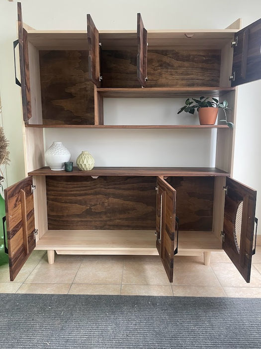 Découvrez cette fantastique armoire fabriqué en bois massif, alliant noyer noir et érable à sucre pour une touche d'élégance et de robustesse. Ce meuble offre un espace de rangement généreux avec ses multiple portes, une jolie tablette parfaite pour exposer vos objets décoratifs ou accessoires, Ajoutez une touche de chaleur et de fonctionnalité à votre intérieur avec ce meuble d'exception.