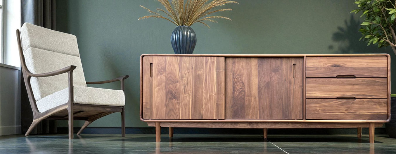 Le noyer noir, apprécié pour sa couleur sombre et son grain élégant, est un bois dur et durable, idéal pour des meubles haut de gamme. Facile à travailler, il vieillit bien et ajoute une touche de sophistication intemporelle.
